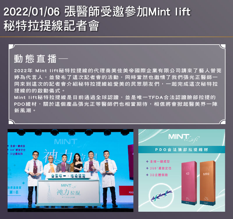張醫師受邀參加Mint lift秘特拉提線記者會
